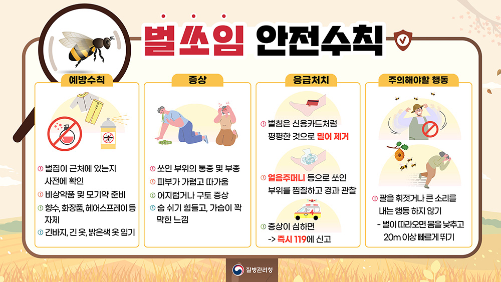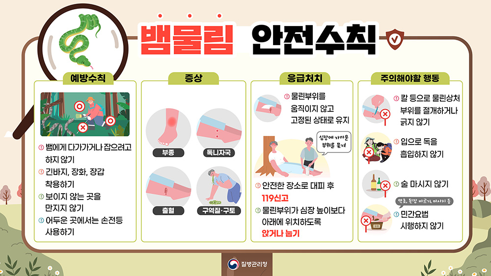 여름부터 가을까지 증가하는 벌쏘임 뱀물림 예방을 위한 안전수칙