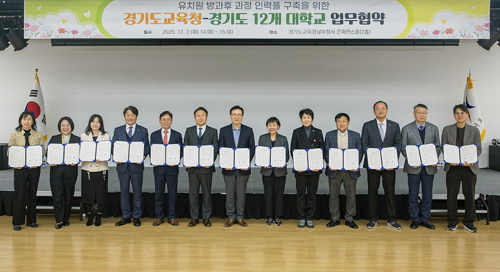평택대학교(총장 이동현)는 12월 2일(화), 경기도교육청 남부청사 컨퍼런스룸에서 경기도교육청과 '유치원 방과후 과정 인력풀 구축을 위한 업무협약'을 체결했다.
