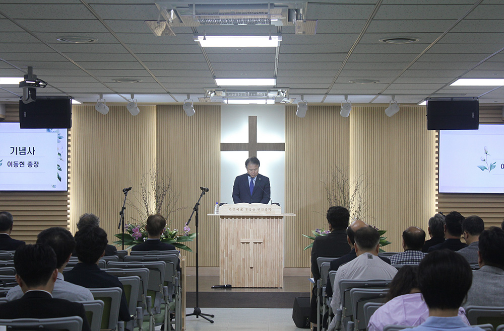 이동현 총장은 개교 113주년을 맞아 개교기념일(15일) 하루 전날 인 10월 14일(화) 오후 4시 30분, 학내 백주년기념탑 3층 대학교회 예배실에서 드려진 개교 113주년 기념예배에 참석하였다.