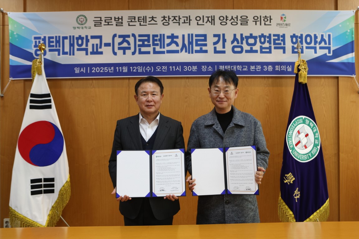이동현 총장은 11월 12일(수), 본관 3층 회의실에서 본교와 콘텐츠새로(대표이사 정태상) 간 체결하는