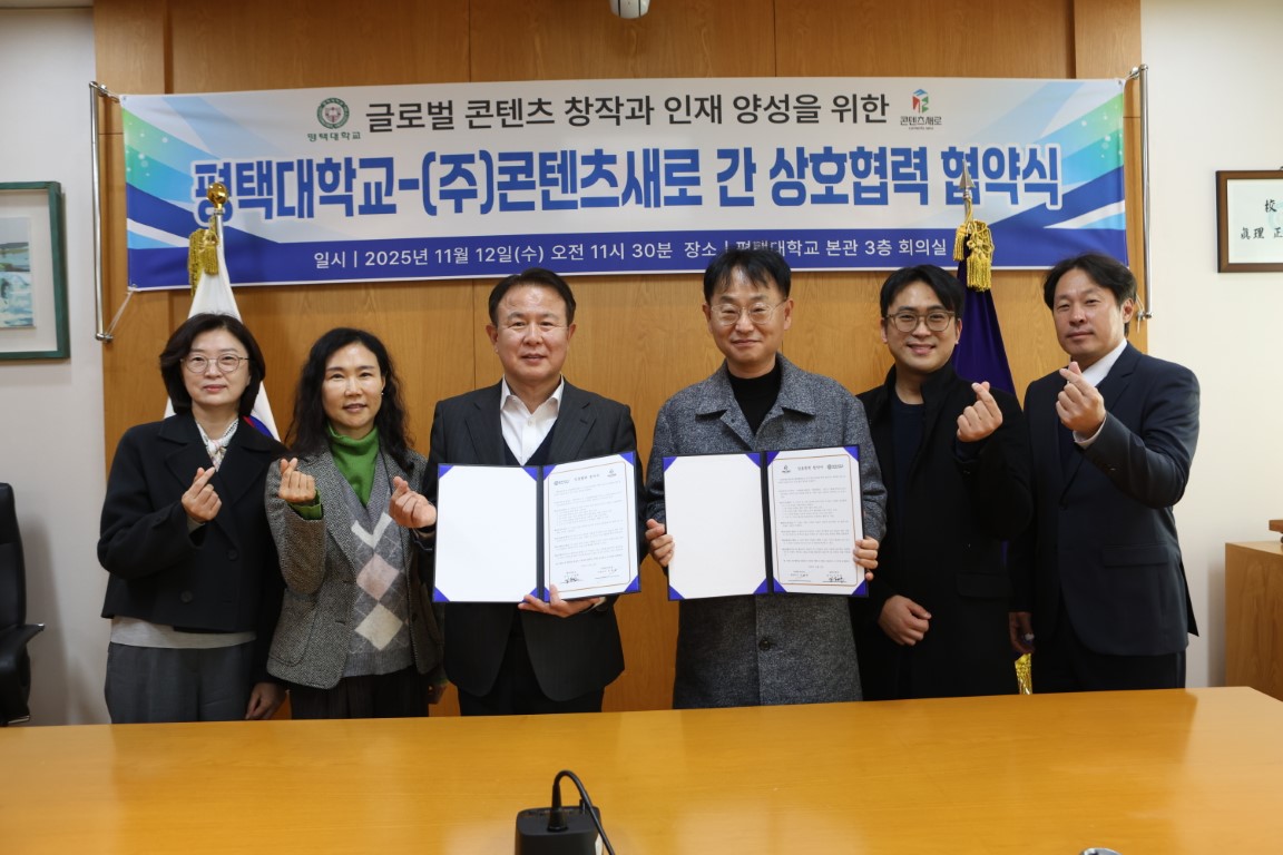협약식에는 콘텐츠새로를 대표해 정태상 대표이사가 참석했고 우리 대학에서는 이동현 총장을 비롯해 성시흡 PTU홍보센터장,